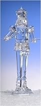His face is frosty in color which accentuates his bright blue eyes while the rest of his body is icy clear