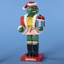This 11-inch Teenage Mutant Ninja Turtle nutcracker features Raphael dressed as Santa Claus holding a Christmas present.