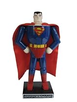 - Garbed in his uniform of Dark Blue suit with his red cape and red boots along with the yellow belt and his trademark on his chest