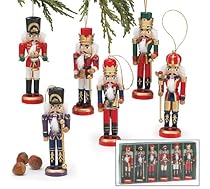 Set Of 6 Wood Nutcracker Christmas Ornaments Gift Boxed