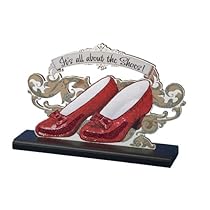 This 9.45-inch Wizard of Oz wooden tablepiece features those famous ruby red slippers and the saying "It's all about the Shoes."